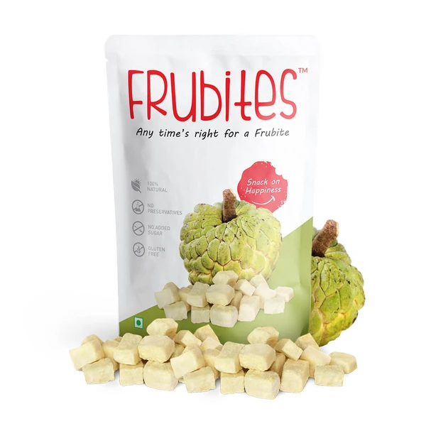 You can now enjoy having Custard Apples throughout the year anytime, anywhere with Frubites! Our unique manufacturing technology retains all their fibre, taste and aroma. These bites are an ideal snack for you in between meetings, for your kid's tiffin, and are great for picnics, trips or movies. Grab your pack of this all-natural fruit snack today!