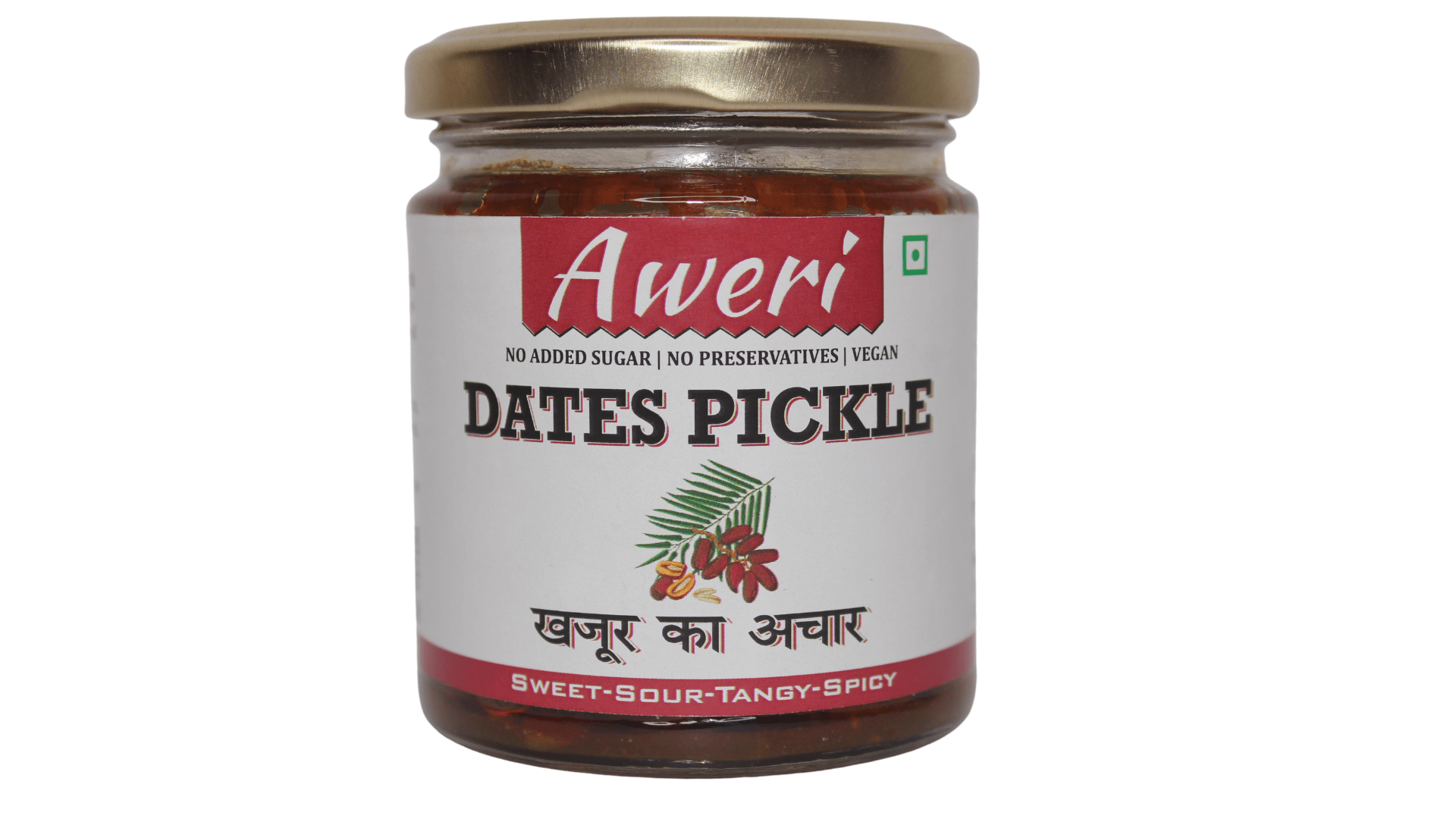 Khajoor ka achaar is the taste of Himachal Pradesh in a bottle. It’s made of Iranian seedless dates, the juice of hill lemons (galgals), which are rare to find, and a smattering of spices like turmeric (haldi), red chilli (laal mirchi), carom seeds (ajwain), and fenugreek seeds (methi). We use mustard oil (sarso ka tel) to both cook the pickle and to preserve it for a longer shelf life. Our achaar is home-made, vegan, and free of any added preservatives. The pickle tastes sour-spicy-sweet and pairs well with paranthas, khichdi and all regular Indian meals. You’ll definitely find yourself reaching out for this jar because our dates pickle makes every meal Aweri special meal!